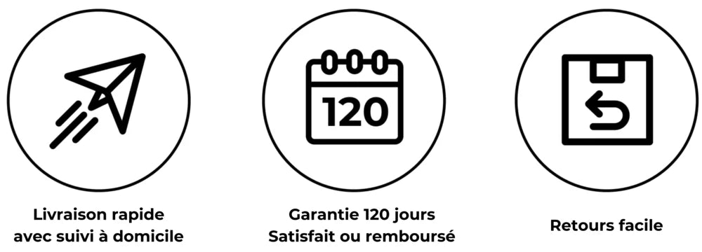 Nous proposons une garantie satisfait ou remboursé de 120 jours. Si la combinaison ne vous convient pas, vous pouvez la retourner ou l’échanger sans souci.