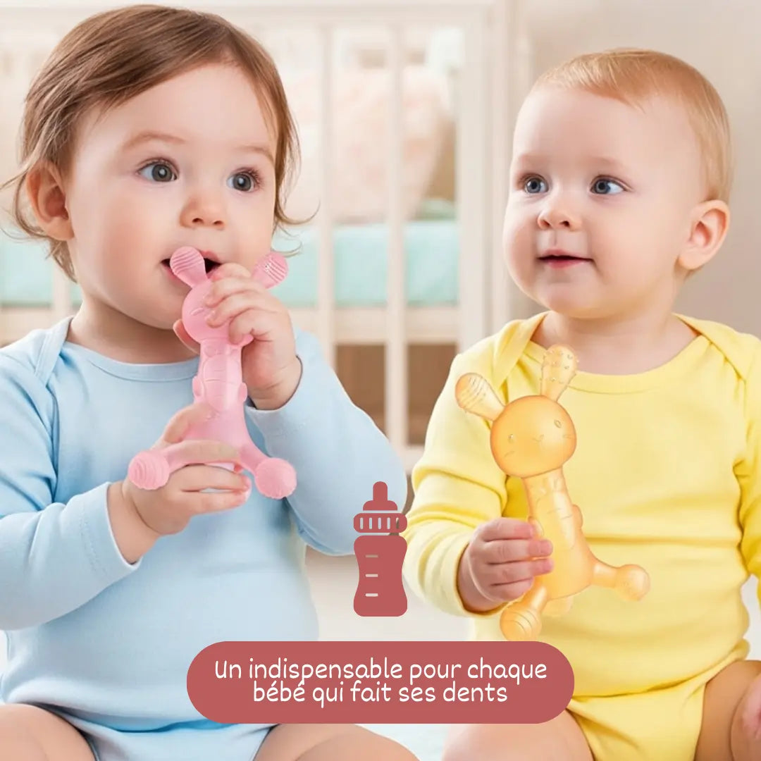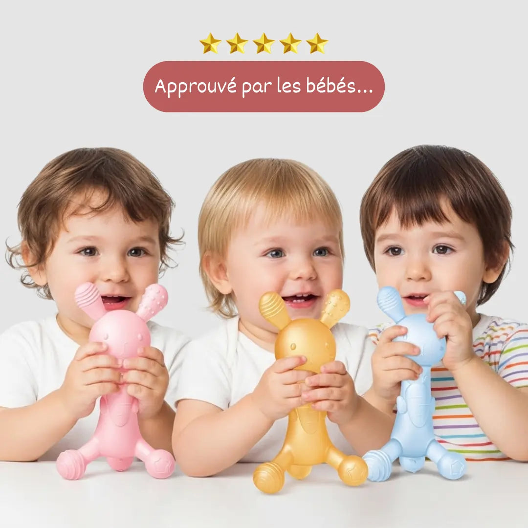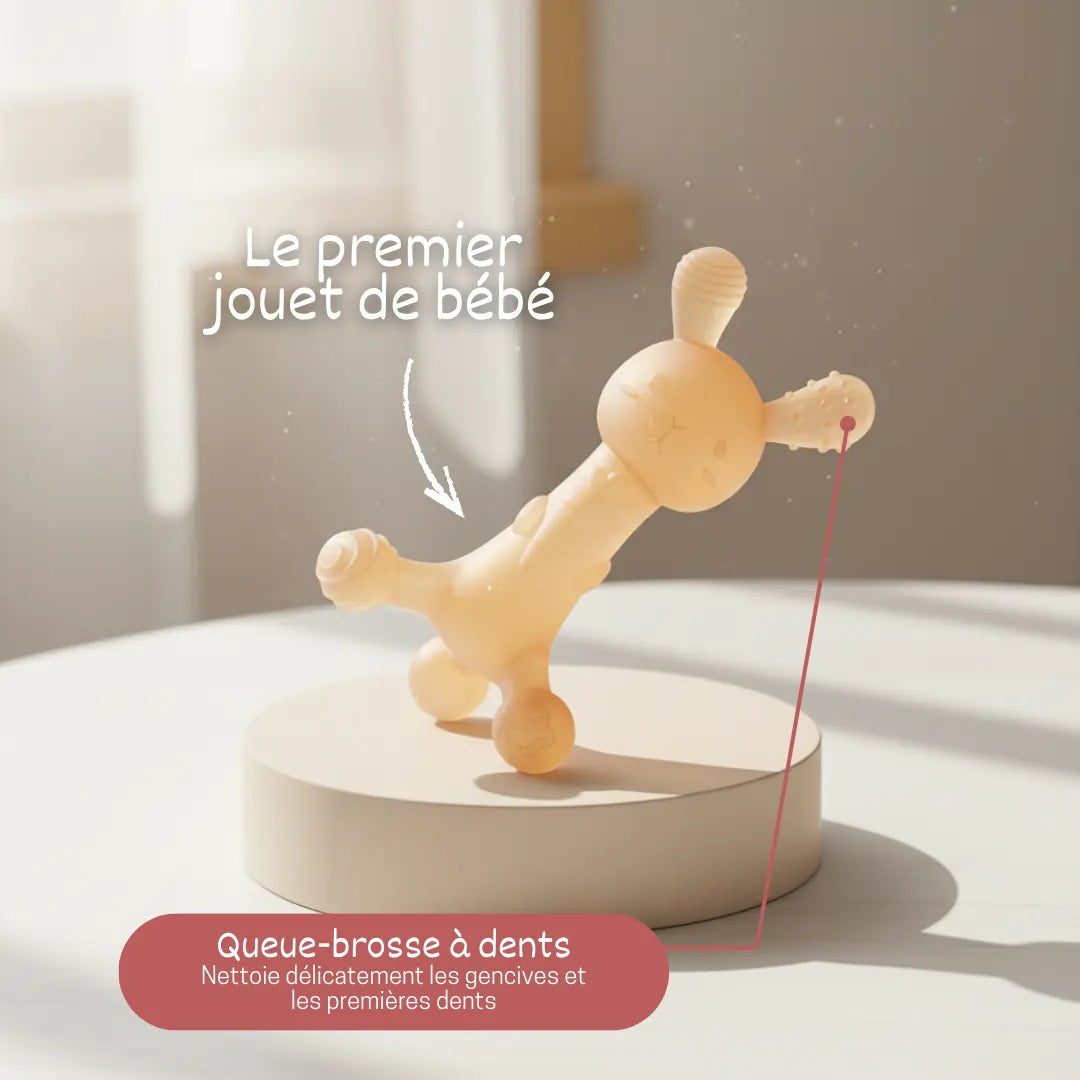 Fonctionnalité 2-en-1 : Le corps soulage les gencives, la queue brosse à dents initie aux bonnes habitudes d'hygiène dentaire.