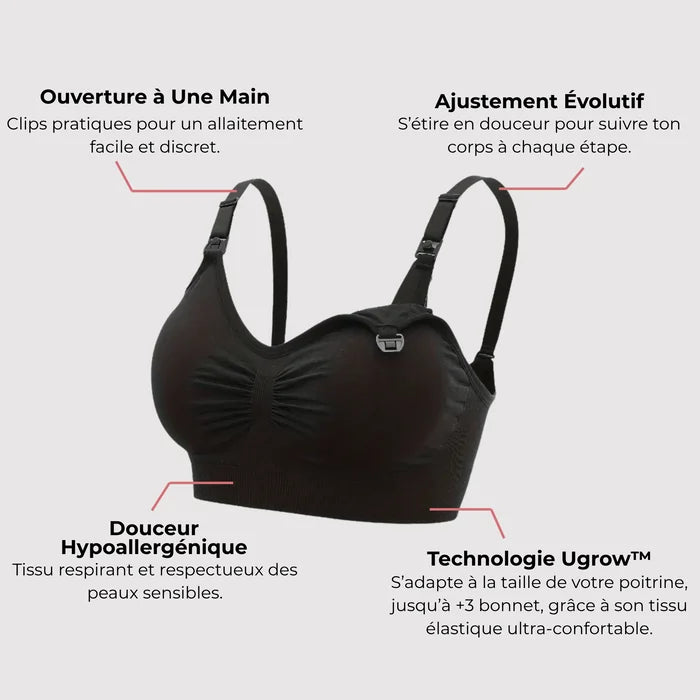 Technologie médicale Ugrow™ : s’adapte jusqu’à +3 tailles de bonnet pour un maintien optimal et une lactation naturelle